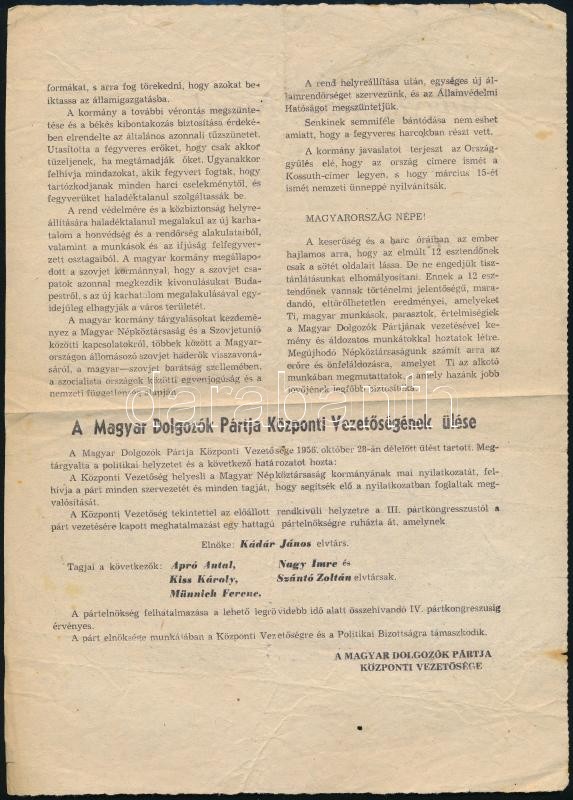 1956 A Magyar Dolgozók Pártja Központi Vezetőségének felhívása a magya... https://www.darabanth.com/hu/322-Gyorsarveres/322.0/Festmeny-mutargy-papirregiseg-egyeb/Nyomtatvanyok~500032/1956-A-Magyar-Dolgozok-Partja-Kozponti-Vezetosegenek-felhivasa-a-magyar-nephez-roplap~II1783776
