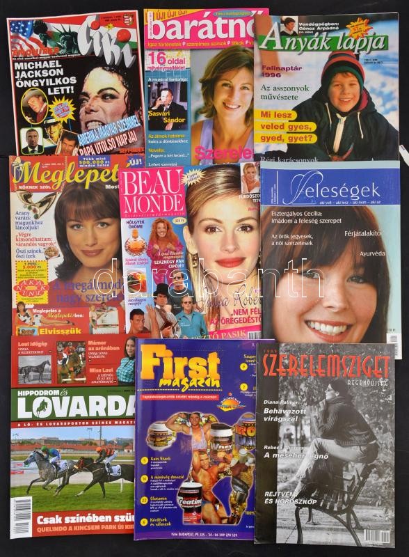 Leírás: 23 modern újság 1. évfolyamának 1. száma (Vegalife, Mini Diana, Beau Monde, Meglepetés, Nász, stb.)