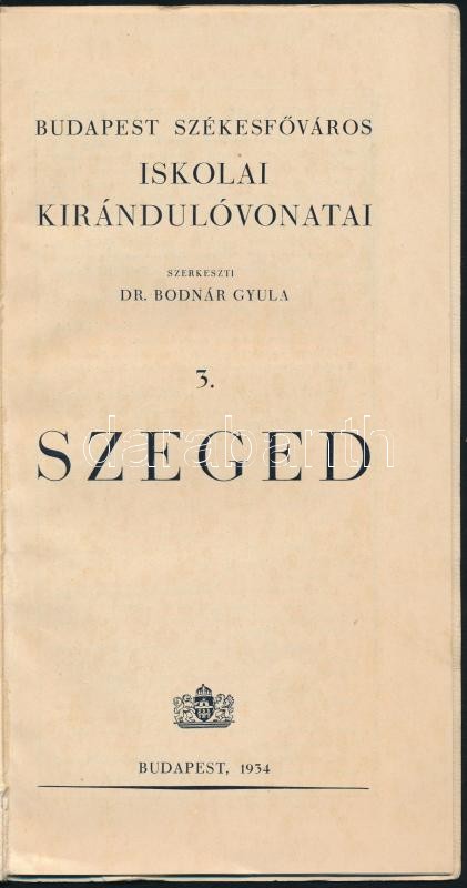 Szeged. Budapest Székesfőváros Iskolai Kirándulóvonatai. Szerk.: Dr. Bodnár Gyula. Bp., 1934, Budapest Székesfőváros Házinyomdája. Kiadói papírkötés, két térképpel.