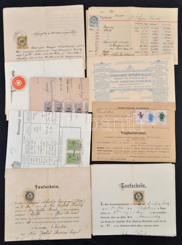 Leírás: cca 1860-1940 10 db klf okmány okmánybélyegekkel