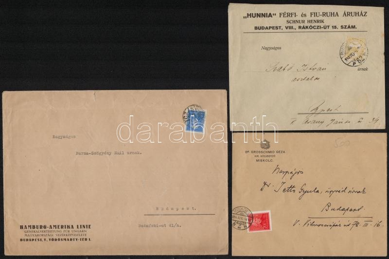 Leírás: 1912-1934 Cégek fejléces borítékjai + képes árjegyzék (Hamburg-Amerika Linie, Dr. Grossschmid Géza, Hunnia Férfi- és Fiú-Ruha Áruáz, Dánn Hugó), 4 db
