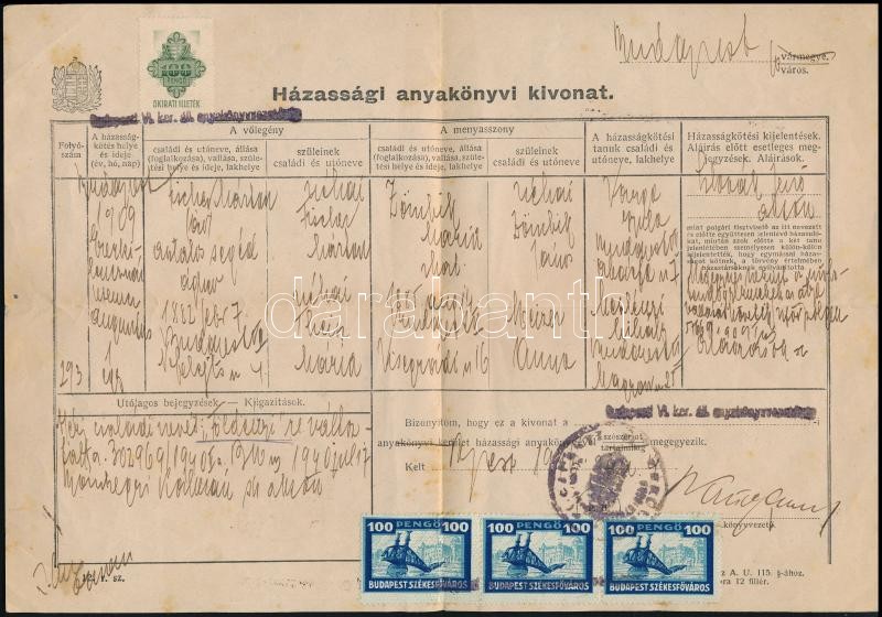 1946 Házassági anyakönyvi kivonat okmánybélyegekkel https://www.darabanth.com/hu/322-Gyorsarveres/322.0/Festmeny-mutargy-papirregiseg-egyeb/Okmanyok~500016/1946-Hazassagi-anyakonyvi-kivonat-okmanybelyegekkel~II1786872