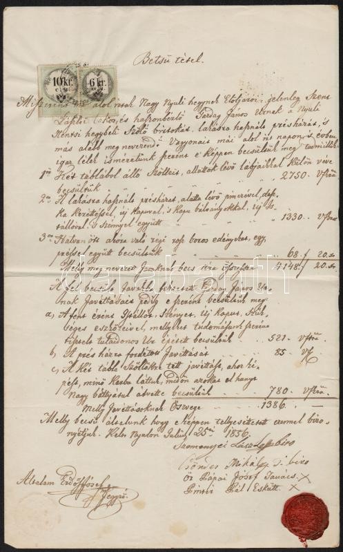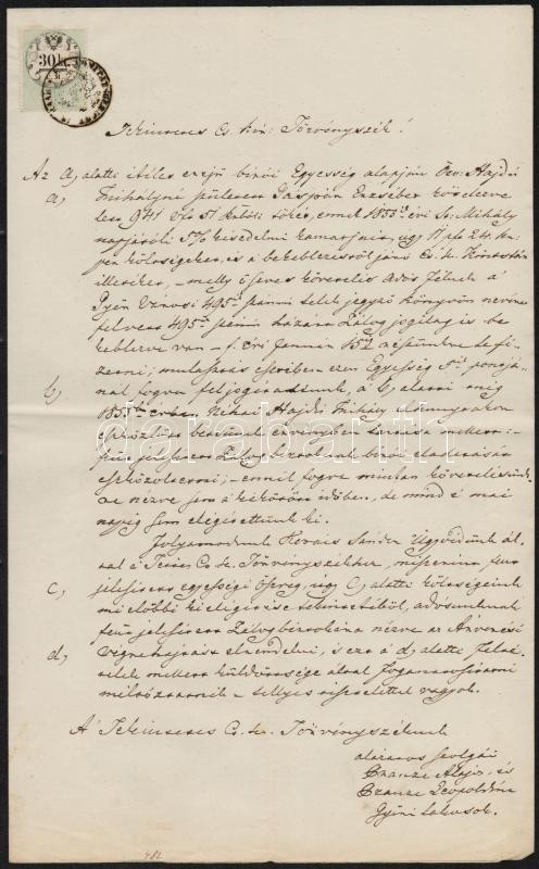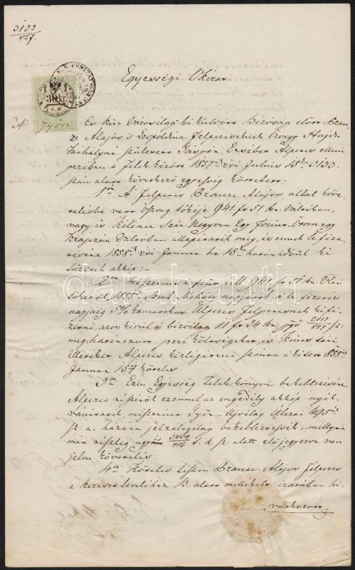 Leírás: cca 1856 3 db bírósági irat 1854-es, CM-es okmánybélyegekkel
