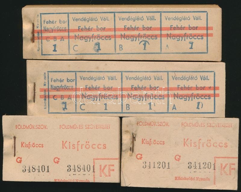 Leírás: cca 1960 Vendéglátó Vállalat, kisfröccs, nagyfröccs papír tömbök, összesen: 4 db