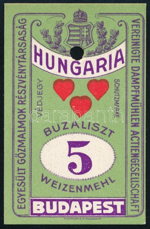 cca 1900 Liszteszsák zárjegy. Budapest - Hungária. / Flour bag tax sta... https://www.darabanth.com/hu/322-Gyorsarveres/322.0/Festmeny-mutargy-papirregiseg-egyeb/Parafilatelia~500014/cca-1900-Liszteszsak-zarjegy-Budapest-Hungaria-Flour-bag-tax-stamp~II1783618