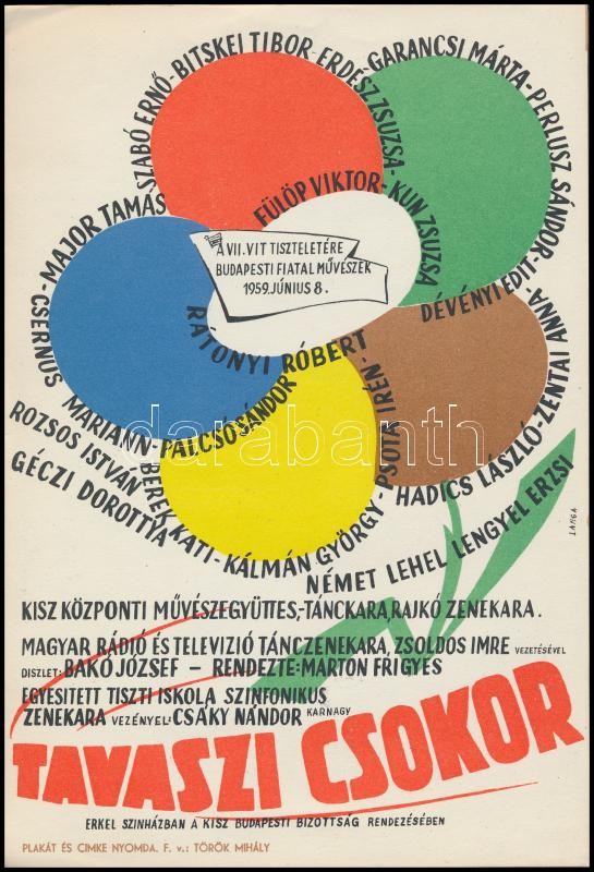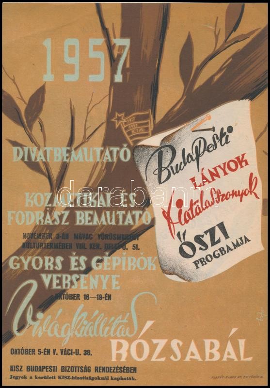 1957, 1959 A KISZ rendezvényeinek kisplakátja, 2 db (Rózsabál, Tavaszi... https://www.darabanth.com/hu/322-Gyorsarveres/322.0/Festmeny-mutargy-papirregiseg-egyeb/Plakat~500033/1957-1959-A-KISZ-rendezvenyeinek-kisplakatja-2-db-Rozsabal-Tavaszi-Csokor-24x17-cm~II1785219