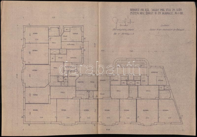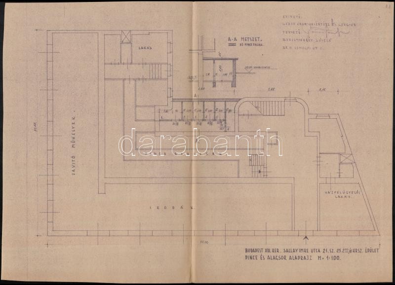 Leírás: Borostyánkőy László 2 db tervrajza a Bp. XIII. Sallay Imre u. 21-ből