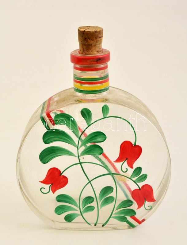 Festett üveg kulacs, parafa dugóval, hibátlan, m: 17 cm https://www.darabanth.com/hu/322-Gyorsarveres/322.0/Festmeny-mutargy-papirregiseg-egyeb/Uvegtargyak~500008/Festett-uveg-kulacs-parafa-dugoval-hibatlan-m-17-cm~II1784402