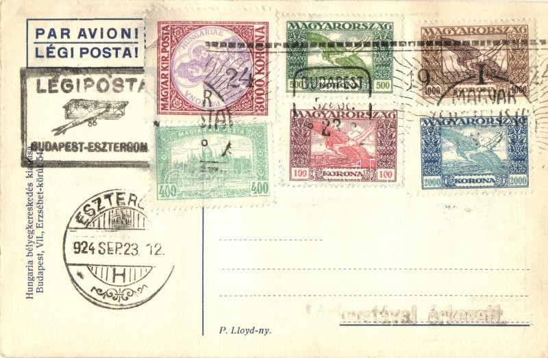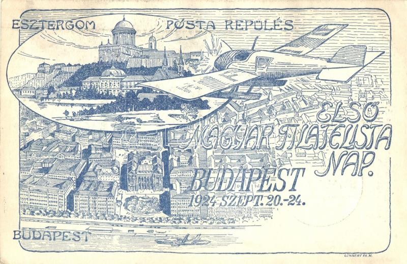 Leírás: 1924 Budapest-Esztergom, Első Magyar Filatelista Nap, Posta repülés / First Hungarian Philatelist Day, Post flight, aircraft, So. Stpl s: Lehnert