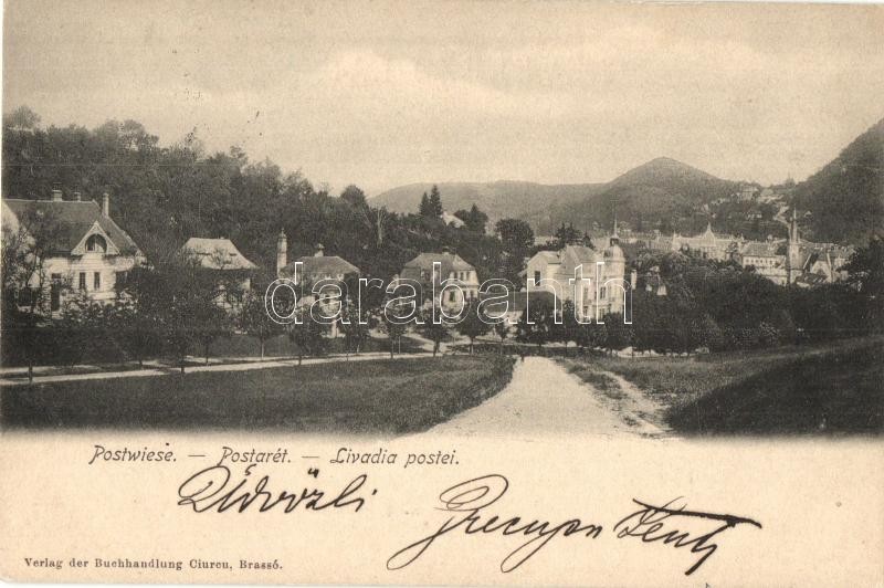 Brassó, Kronstadt, Brasov; Postarét / Postwiese / Livadia postei. Verl... https://www.darabanth.com/hu/322-Gyorsarveres/322.0/Kepeslapok/Erdely~2000007/Brasso-Kronstadt-Brasov-Postaret-Postwiese-Livadia-postei-Verlag-der-Buchhandlung-Ciurcu~II1570909