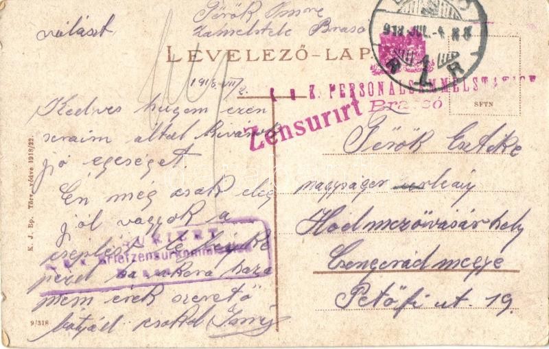 Leírás: Brassó, Kronstadt, Brasov; Tanácsház, városháza, üzletek / town hall, shops + K.u.K. Personalsammelstation Brassó (EK)