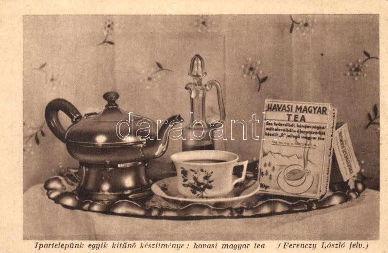Leírás: Meggyesfalva, Mureseni; Likőrgyár ipartelepének reklámlapja. Havasi magyar tea. Erdélyrészi Hangya Szövetkezet kiadása, Ferenczy László felvétele / Hungarian tea advertisement of the liqueur factory