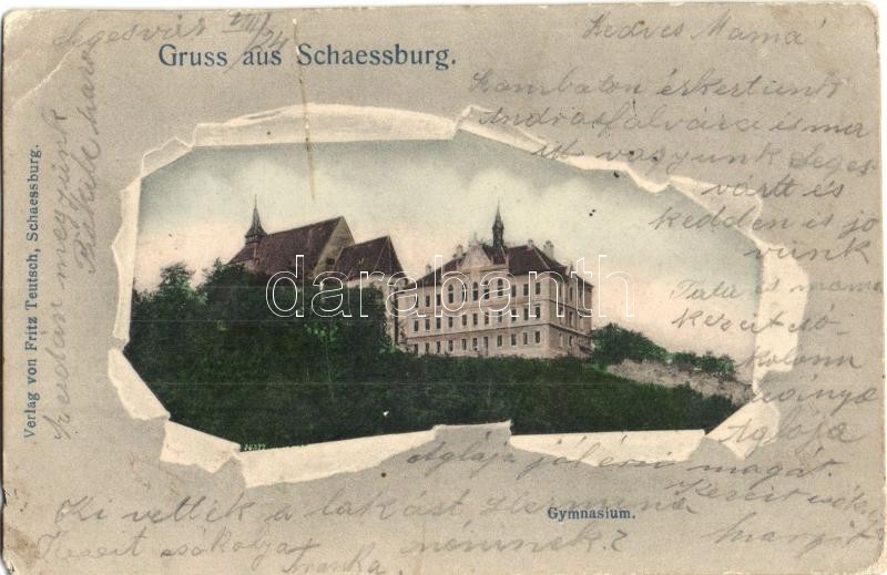 Leírás: Segesvár, Schassburg, Sighisoara; Gymnasium / Gimnázium. Fritz Teutsch kiadása / grammar school (kis sarokhiány / small corner shortage)
