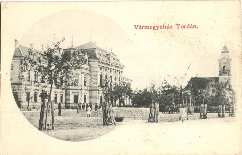 Leírás: Torda, Turda; Vármegyeház, templom / county hall, church (EK)