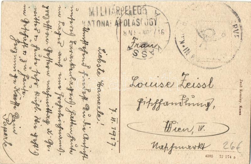 Kassa, Kosice; Megfigyelő Barakk Kórház. Természet után rajzolta Wolff János Gusztáv. Jenő Kemény kiadása / military observation hospital + K.u.K. Militärpflege Katonai Ápolásügy (EK)
