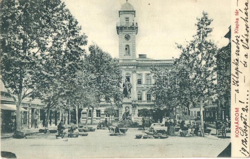 Komárom, Komárno; Klapka tér, Klapka György szobor, üzletek, piaci áru... https://www.darabanth.com/hu/322-Gyorsarveres/322.0/Kepeslapok/Felvidek~2000008/Komarom-Komarno-Klapka-ter-Klapka-Gyorgy-szobor-uzletek-piaci-arusok-Varoshaza-Czike-~II1787914