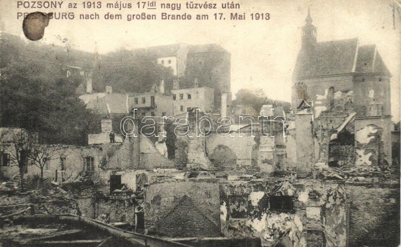 Pozsony, Pressburg, Bratislava; romok az 1913 május 17-ei nagy tűzvész... https://www.darabanth.com/hu/322-Gyorsarveres/322.0/Kepeslapok/Felvidek~2000008/Pozsony-Pressburg-Bratislava-romok-az-1913-majus-17-ei-nagy-tuzvesz-utan-Kaufmann-kiadasa-~II1481725