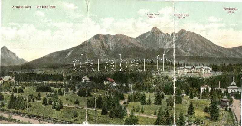 Tátralomnic, Tatranska Lomnica; Lomnici és Késmárki csúcs. Divald Károly 1908. Három-részes panorámalap / mountain peaks with hotels. 3-tiled panoramacard (Rb)
