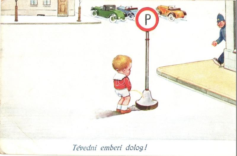 Tévedni emberi dolog! / Humorous graphic postcard, peeing boy, WSSB 84... https://www.darabanth.com/hu/322-Gyorsarveres/322.0/Kepeslapok/Humor~2000052/Tevedni-emberi-dolog-Humorous-graphic-postcard-peeing-boy-WSSB-84622-EB~II1643539