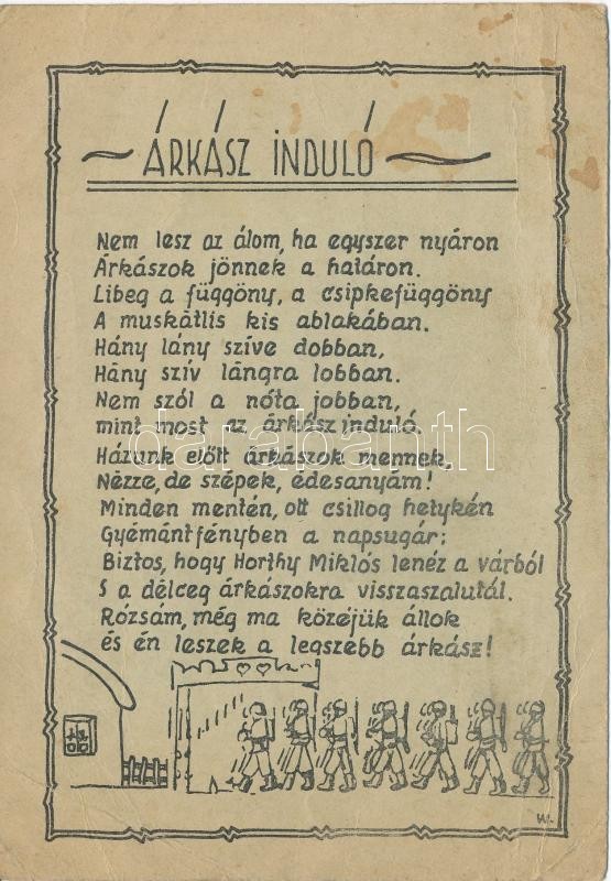Árkász induló. Tábori Postai Levelezőlap / WWII Hungarian irredenta mi... https://www.darabanth.com/hu/322-Gyorsarveres/322.0/Kepeslapok/Katonai~2000062/Arkasz-indulo-Tabori-Postai-Levelezolap-WWII-Hungarian-irredenta-military-field-post-plus-1940-~II1788217