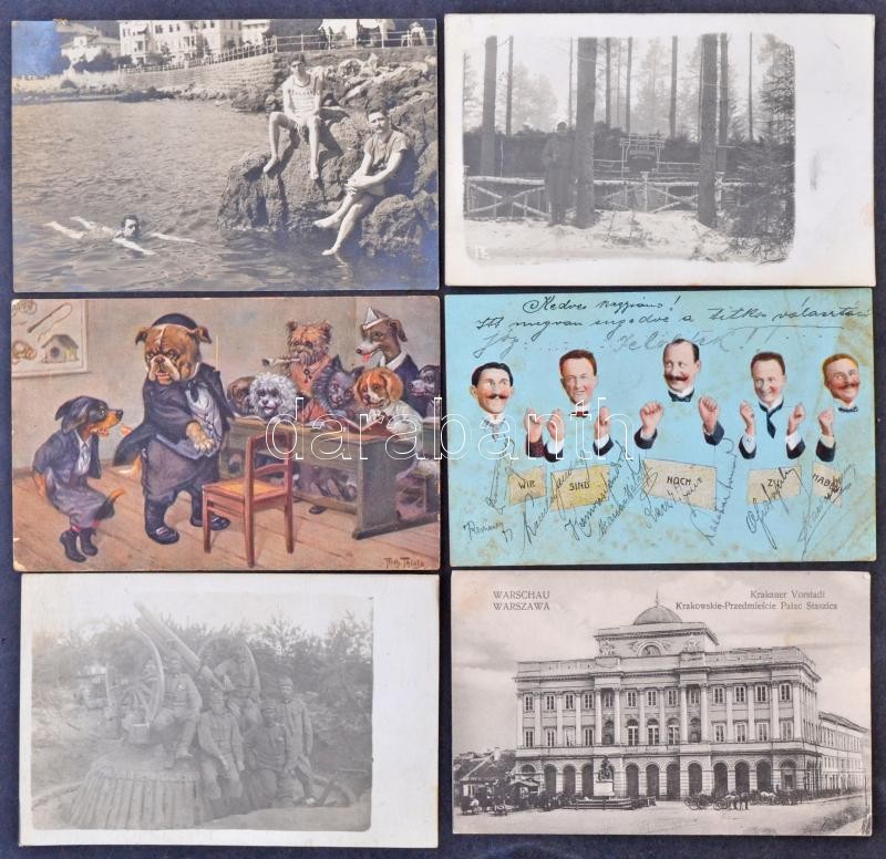 Régi képeslap gyűjtemény maradvány, több mint 230 régi lap - motívumok, üdvözlők, szinészek, háborús fotólapok, magyar és külföldi városképek, közte rengeteg érdekesség, régi album lapjai között