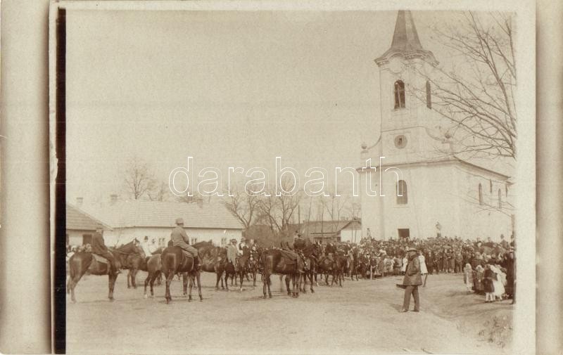 Leírás: 1928 Kőtelek, Köteleki harangok felszentelése (a harangemelő kötél már a templomtorony ablakában). photo