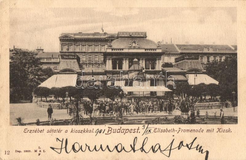 Leírás: Budapest V. Erzsébet sétatér a kioszkkal (EK)