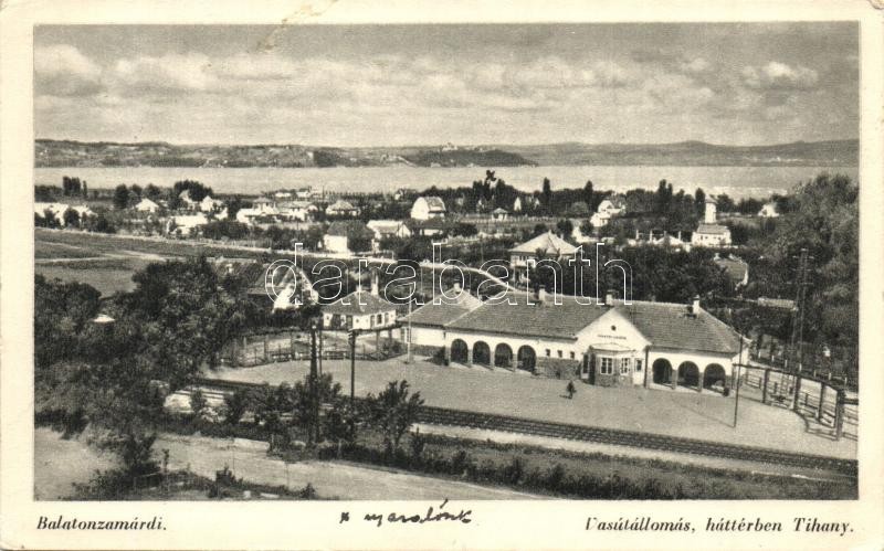 Zamárdi, Vasútállomás, háttérben Tihany (EK)
