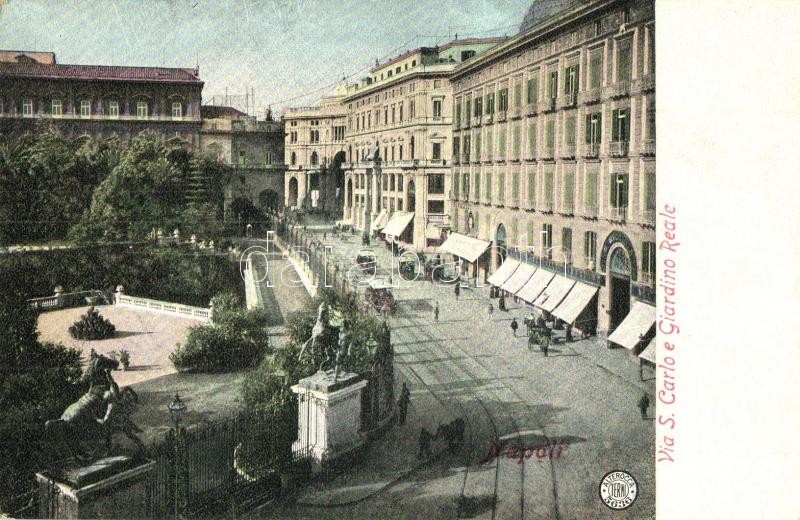 Leírás: Naples, Napoli; Via S. Carlo e Giardino Reale / street, park