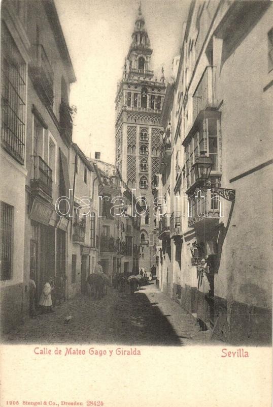 Seville, Sevilla; Calle de Mateo Gago y Giralda / street view https://www.darabanth.com/hu/322-Gyorsarveres/322.0/Kepeslapok/Spanyolorszag~2000089/Seville-Sevilla-Calle-de-Mateo-Gago-y-Giralda-street-view~II1727404