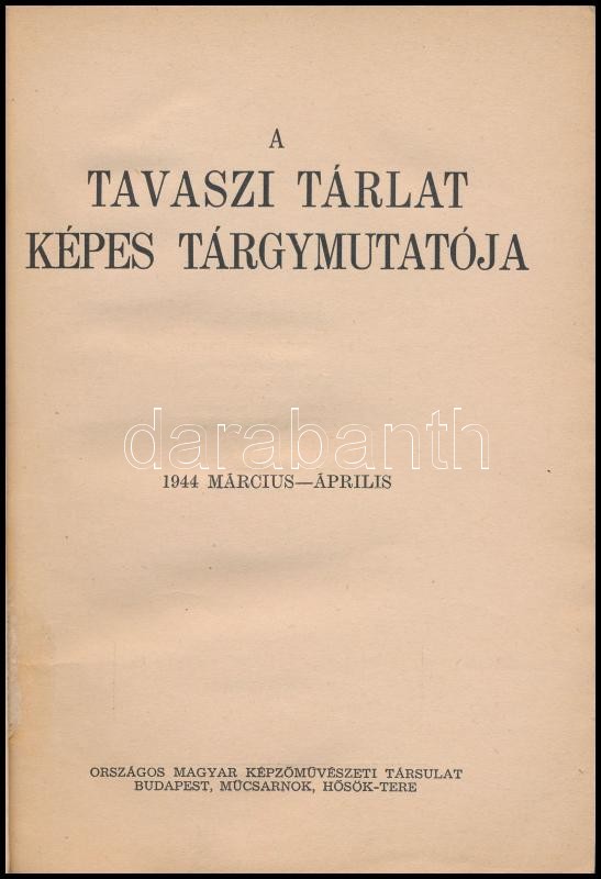1944 Tavaszi tárlat képes tárgymutatója. Budapest, 1944, Országos Magyar Képzőművészeti Társulat, (Légrády-Testvérek-ny.), 30+2 p.+ 16 t. Kiadói papírkötés, egy-kettő mellett tollal bejegyzés.