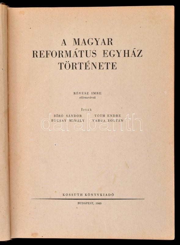 Bíró Sándor et al.: A magyar református egyház története. Bp., 1949, K... https://www.darabanth.com/hu/322-Gyorsarveres/322.0/Konyvek/Konyvek-Vallas~1000013/Biro-Sandor-et-al-A-magyar-reformatus-egyhaz-tortenete-Bp-1949-Kossuth-Javitott-felv~II1741965