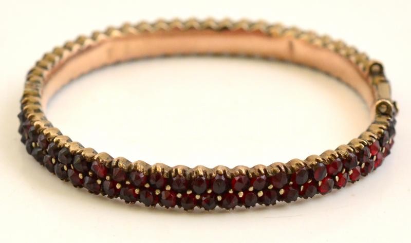 Aranyozott ezüst(Ag) karperec gránát kövekkel, horpadással, jelzés nél... https://www.darabanth.com/hu/322-Gyorsarveres/322.0/Nemesfem-Disztargyak-Orak-es-Ekszerek/Nemesfem-Disztargyak-Orak-es-Ekszerek~500034/Aranyozott-ezustAg-karperec-granat-kovekkel-horpadassal-jelzes-nelkul-6C3976-cm-brutto~II1787604