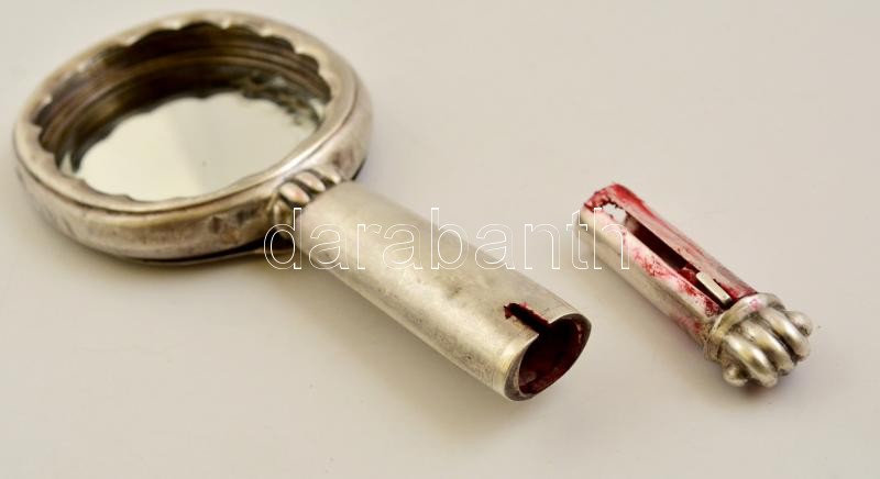 Ezüst (Ag) sminktükör, nyelében rúzstartóval, jelzett, hiányos, h: 15 ... https://www.darabanth.com/hu/322-Gyorsarveres/322.0/Nemesfem-Disztargyak-Orak-es-Ekszerek/Nemesfem-Disztargyak-Orak-es-Ekszerek~500034/Ezust-Ag-sminktukor-nyeleben-ruzstartoval-jelzett-hianyos-h-15-cm-brutto-95-2-g~II1783877