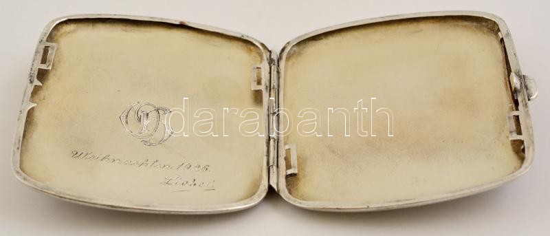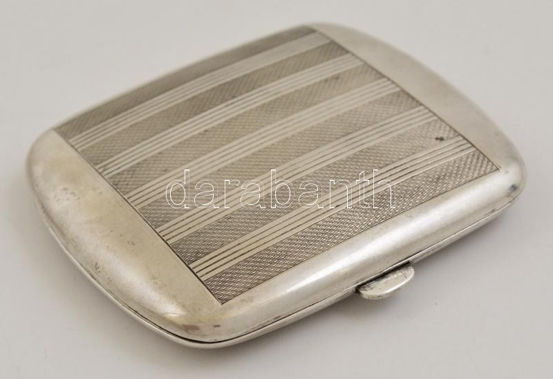 Leírás: Ezüst(Ag) cigarettatárca csíkozott díszítéssel, jelzett, 8,5×8 cm, nettó: 77,6 g
