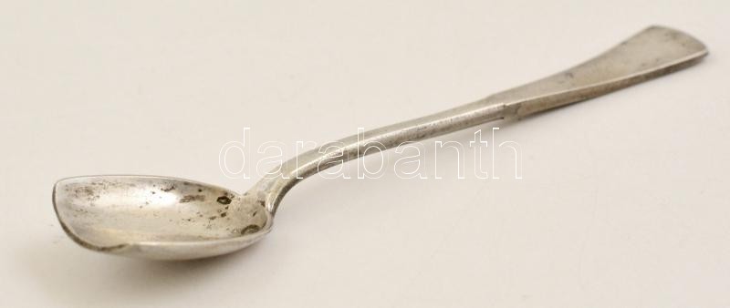 Ezüst(Ag) fűszerkanál, jelzett, h: 8,5 cm, nettó: 8,2 g https://www.darabanth.com/hu/322-Gyorsarveres/322.0/Nemesfem-Disztargyak-Orak-es-Ekszerek/Nemesfem-Disztargyak-Orak-es-Ekszerek~500034/EzustAg-fuszerkanal-jelzett-h-8-5-cm-netto-8-2-g~II1784003