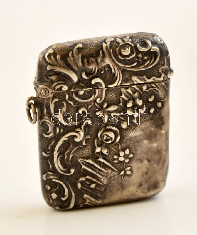 Leírás: Ezüst(Ag) gyufatartó ornamentikus mintával, jelzett, 4,5×3,5 cm, nettó: 14,9 g