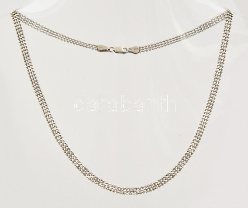 Ezüst(Ag) háromsoros gyöngymintás karkötő, jelzett, h: 42 cm, nettó: 8... https://www.darabanth.com/hu/322-Gyorsarveres/322.0/Nemesfem-Disztargyak-Orak-es-Ekszerek/Nemesfem-Disztargyak-Orak-es-Ekszerek~500034/EzustAg-haromsoros-gyongymintas-karkoto-jelzett-h-42-cm-netto-8-3-g~II1783432