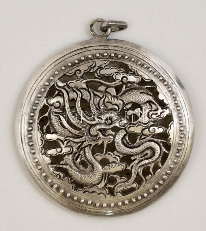 Leírás: Ezüst(Ag) sárkányos medál, jelzett, d: 4,5 cm, nettó: 14,5 g