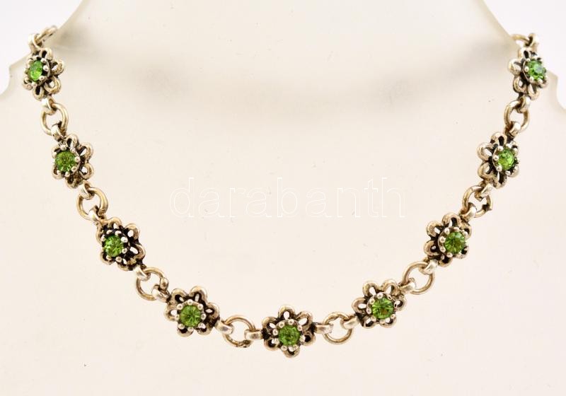 Leírás: Ezüst(Ag) zöld köves virágos karkötő, jelzett, h: 18,5 cm, bruttó: 7,1 g