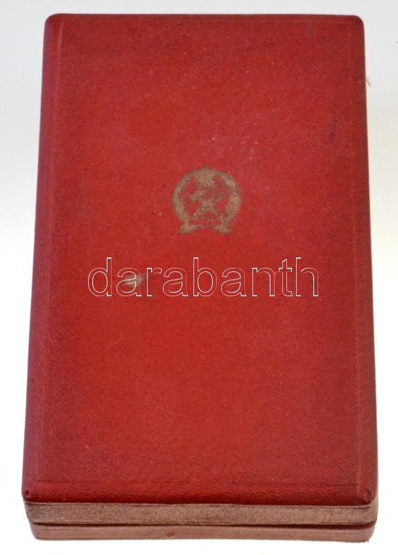 Leírás: 1954. "Szocialista Munkáért Érdemérem" zománcozott fém kitüntetés mellszalagon, szalagsávval, dísztokban T:1-,2