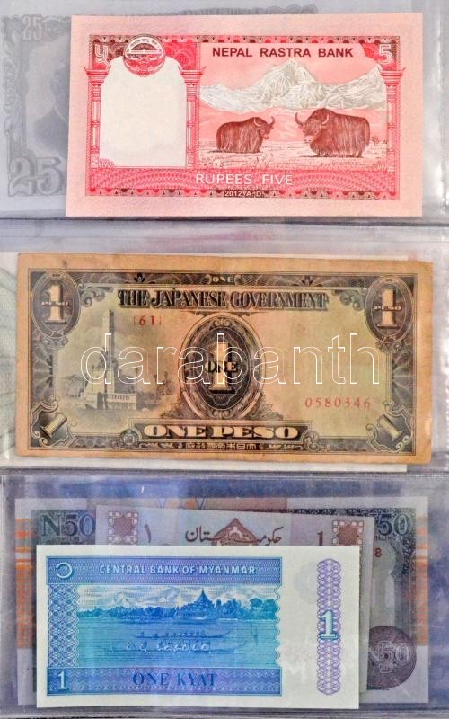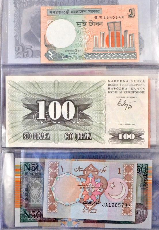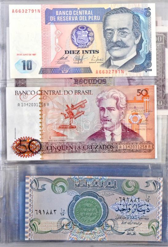 106db-os vegyes világpénz gyűjtemény albumba rendezve, közte Afganisztán, Brazília, Indonézia, Irak, Suriname, Zambia T:I,II 106pcs world paper money lot in album, with banknotes from Afghanistan, Brasil, Indonesia, Iraq, Suriname, Zambia C:UNC,XF