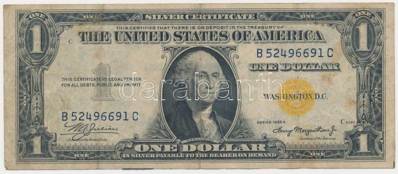 Amerikai Egyesült Államok 1934-1945. (1935A) 1$ "Silver Certificate - kisméretű" sárga pecsét, "William Alexander Julian - Henry Morgenthau Jr." T:III