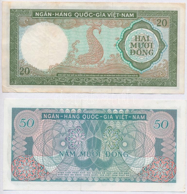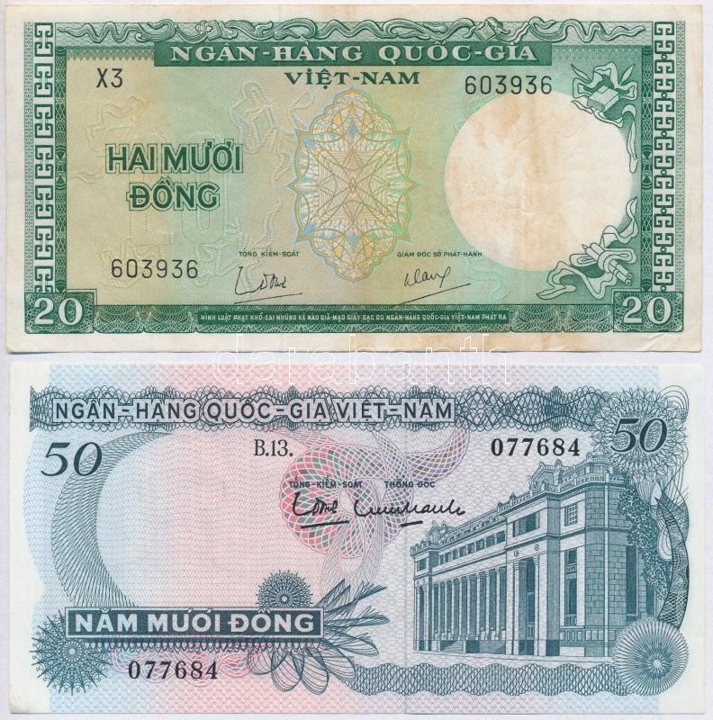 South Vietnam 1964. 20 Dong +... https://www.darabanth.com/hu/322-Gyorsarveres/322.0/Numizmatika/Kulfoldi-bankjegyek~2500012/Del-Vietnam-1964-20D-plus-1969-50D-TIII-South-Vietnam-1964-20-Dong-plus-1969-50-Dong-CF~II1784388