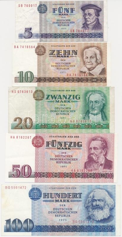 G... https://www.darabanth.com/hu/322-Gyorsarveres/322.0/Numizmatika/Kulfoldi-bankjegyek~2500012/NDK-1975-5M-plus-1971-10M-plus-1975-20M-plus-1971-50M-plus-1975-100M-TIII-GDR-1975-5-Mark-plus-1971-10-Mar~II1787274