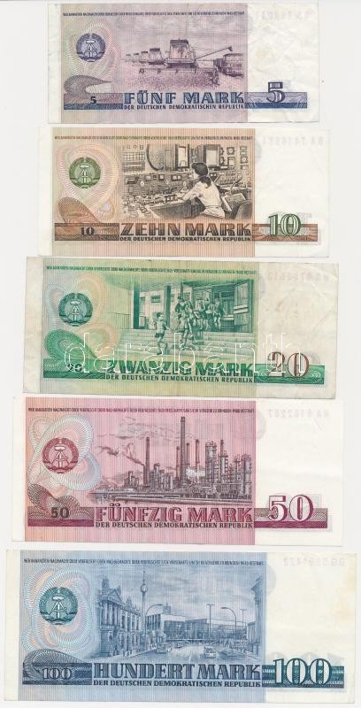 GDR 1975. 5 Mark + 1971. 10 Mark + 1975. 20 Mark + 1971. 50 Mark + 1975. 100 Mark C:F