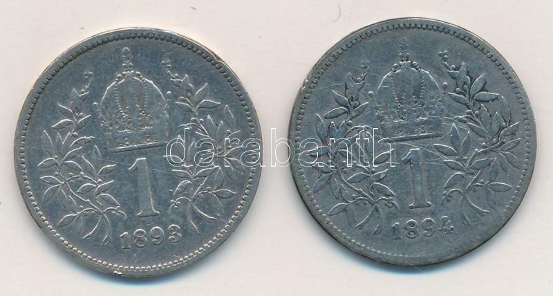 Leírás: Ausztria 1893-1894. 1K Ag "Ferenc József" (2xklf) T:3 Austria 1893-1894. 1 Corona Ag "Franz Joseph" (2xdiff) C:F