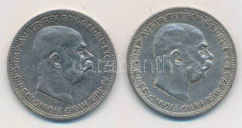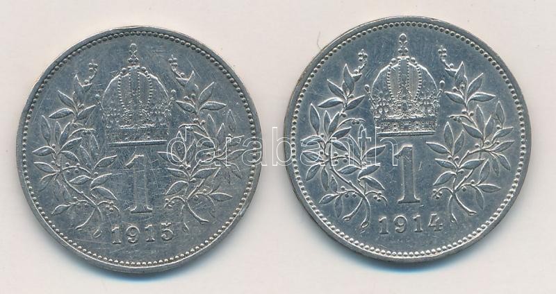 Leírás: Ausztria 1914-1915. 1K Ag "Ferenc József" (2xklf) T:2,2- Austria 1914-1915. 1 Corona Ag "Franz Joseph" (2xdiff) C:XF,VF