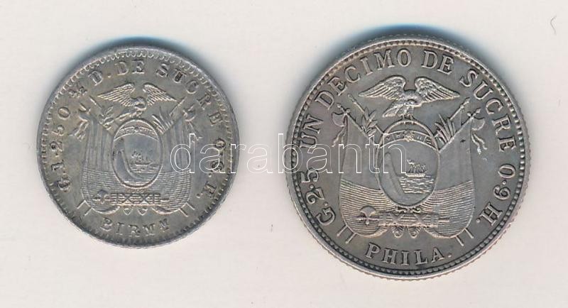 Ecuador 1915. 1/2 Decimo Ag +... https://www.darabanth.com/hu/322-Gyorsarveres/322.0/Numizmatika/Kulfoldi-fem-es-ezustpenzek~2500013/Ecuador-1915-12d-Ag-plus-1916-1d-Ag-T2-Ecuador-1915-12-Decimo-Ag-plus-1916-1-Decimo-Ag-CXF~II1783456