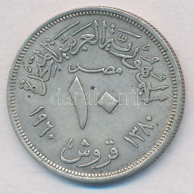 Egypt 1960. 10 Piastres Ag C:XF https://www.darabanth.com/hu/322-Gyorsarveres/322.0/Numizmatika/Kulfoldi-fem-es-ezustpenzek~2500013/Egyiptom-1960-10p-Ag-T2-Egypt-1960-10-Piastres-Ag-CXF~II1783345
